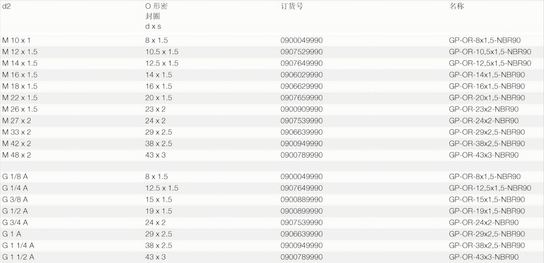 离心管式接头和铰接式管接头中用于空心螺栓的○形密封圈O形密封圈的标准材料是丁晴橡胶(NBR)