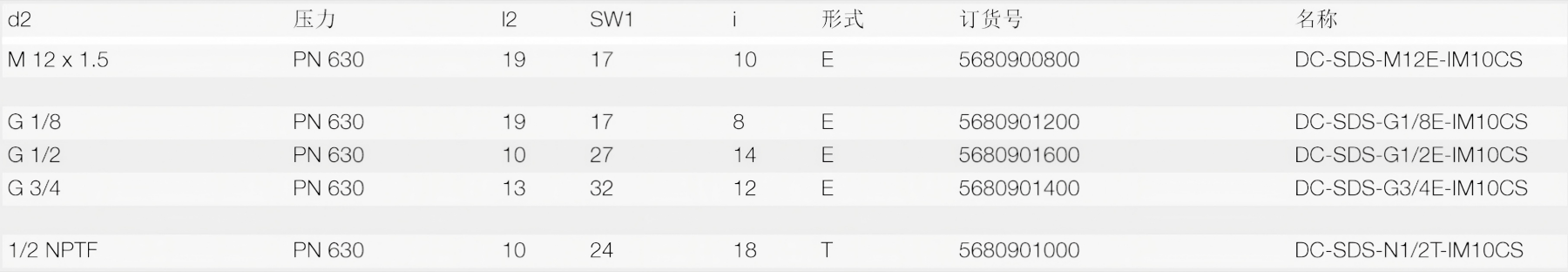 CS型(O形密封圈)、E型(PEFLEX)、T型(圆锥形)、F型(O形密封圈)