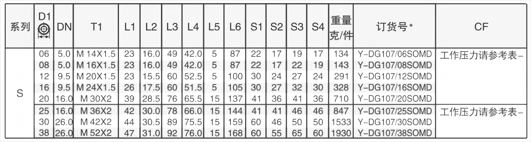 重系列S,管外径6至38mm,工作压力:100bar;