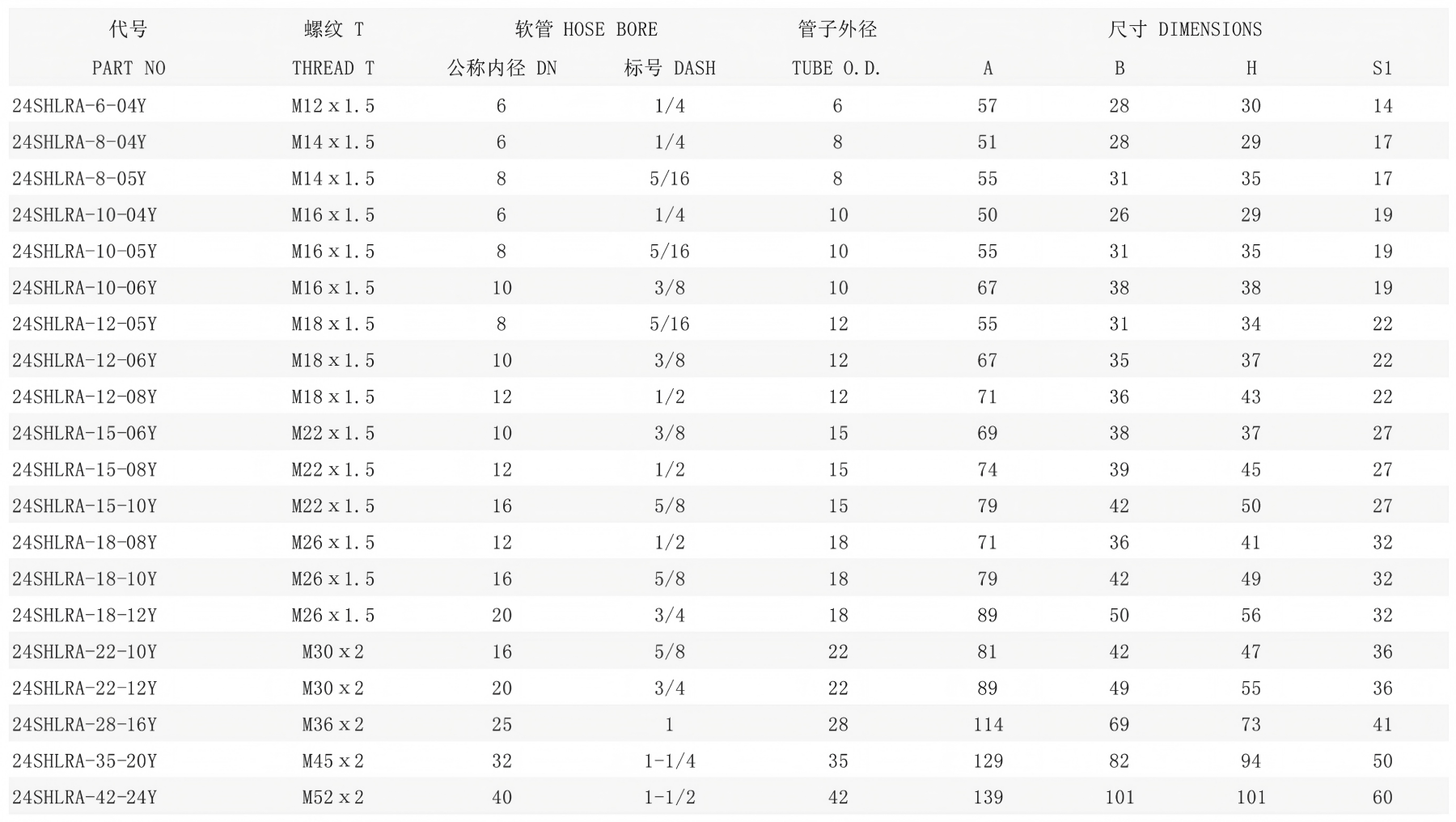 24SFLLA-18-08TY | 24SFL18T/SA08/L | 24SLM26X1.5T | STA08Y | 1CA43-18-8 | 20411-26-08 |