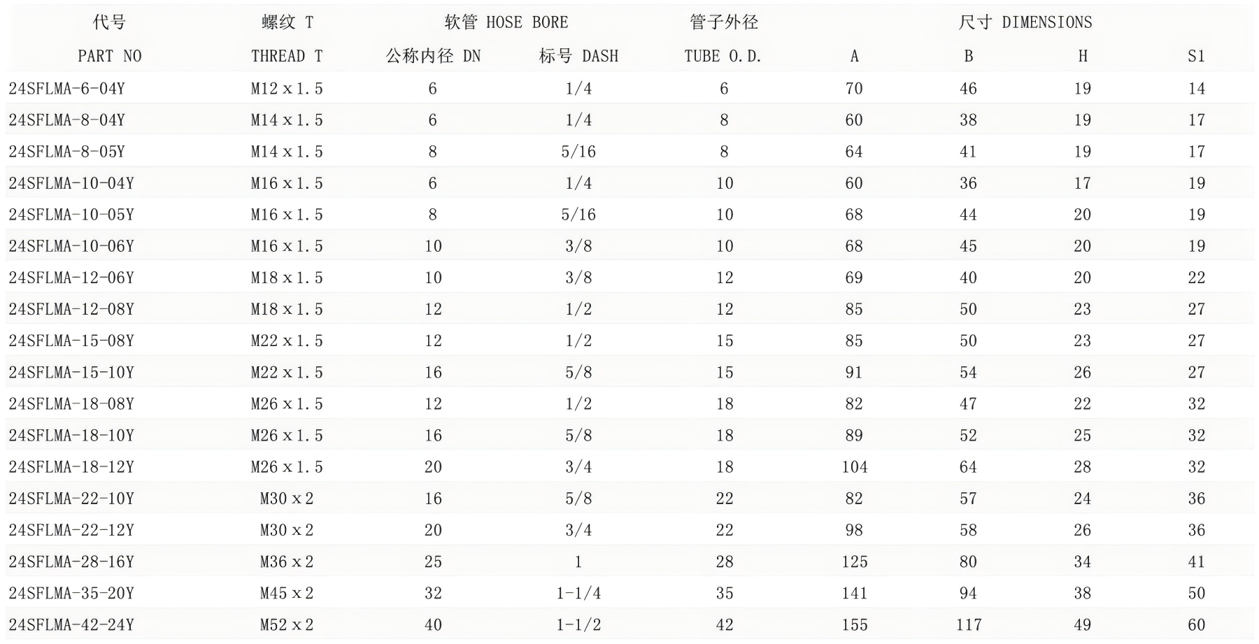 24SFLLA-18-08TY | 24SFL18T/SA08/L | 24SLM26X1.5T | STA08Y | 1CA43-18-8 | 20411-26-08 |