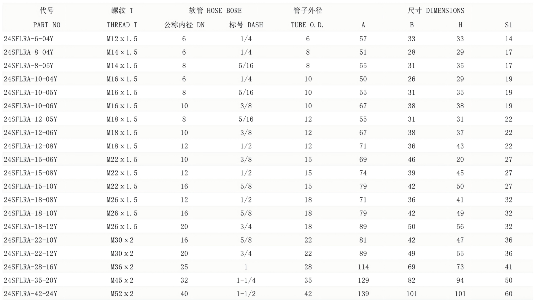 24SFLLA-18-08TY | 24SFL18T/SA08/L | 24SLM26X1.5T | STA08Y | 1CA43-18-8 | 20411-26-08 |