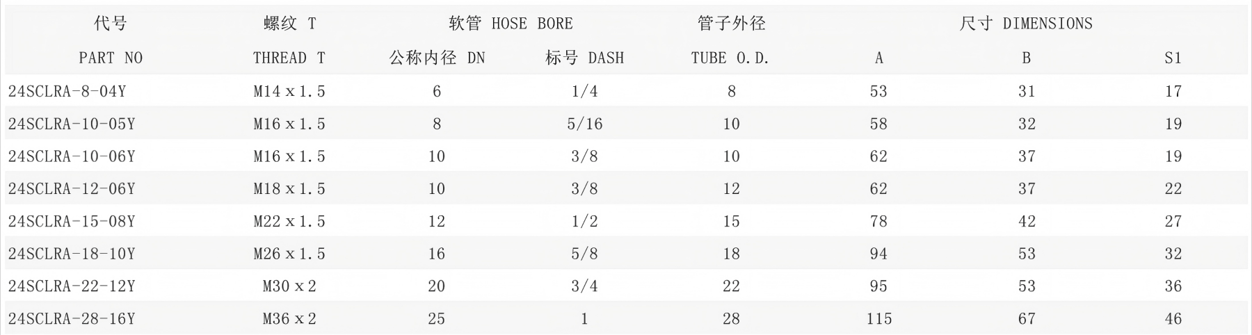 24SFLLA-18-08TY | 24SFL18T/SA08/L | 24SLM26X1.5T | STA08Y | 1CA43-18-8 | 20411-26-08 |