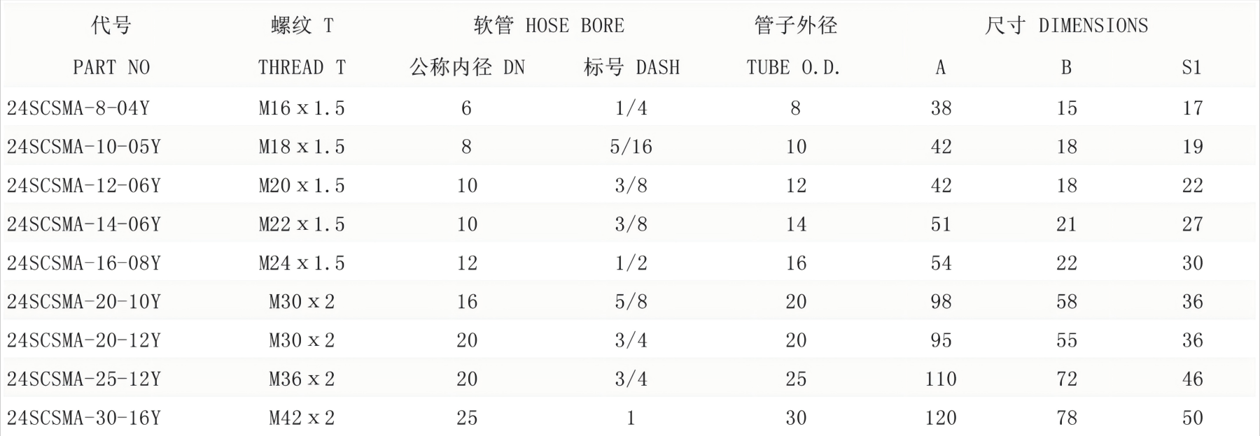 24SFLLA-18-08TY | 24SFL18T/SA08/L | 24SLM26X1.5T | STA08Y | 1CA43-18-8 | 20411-26-08 |