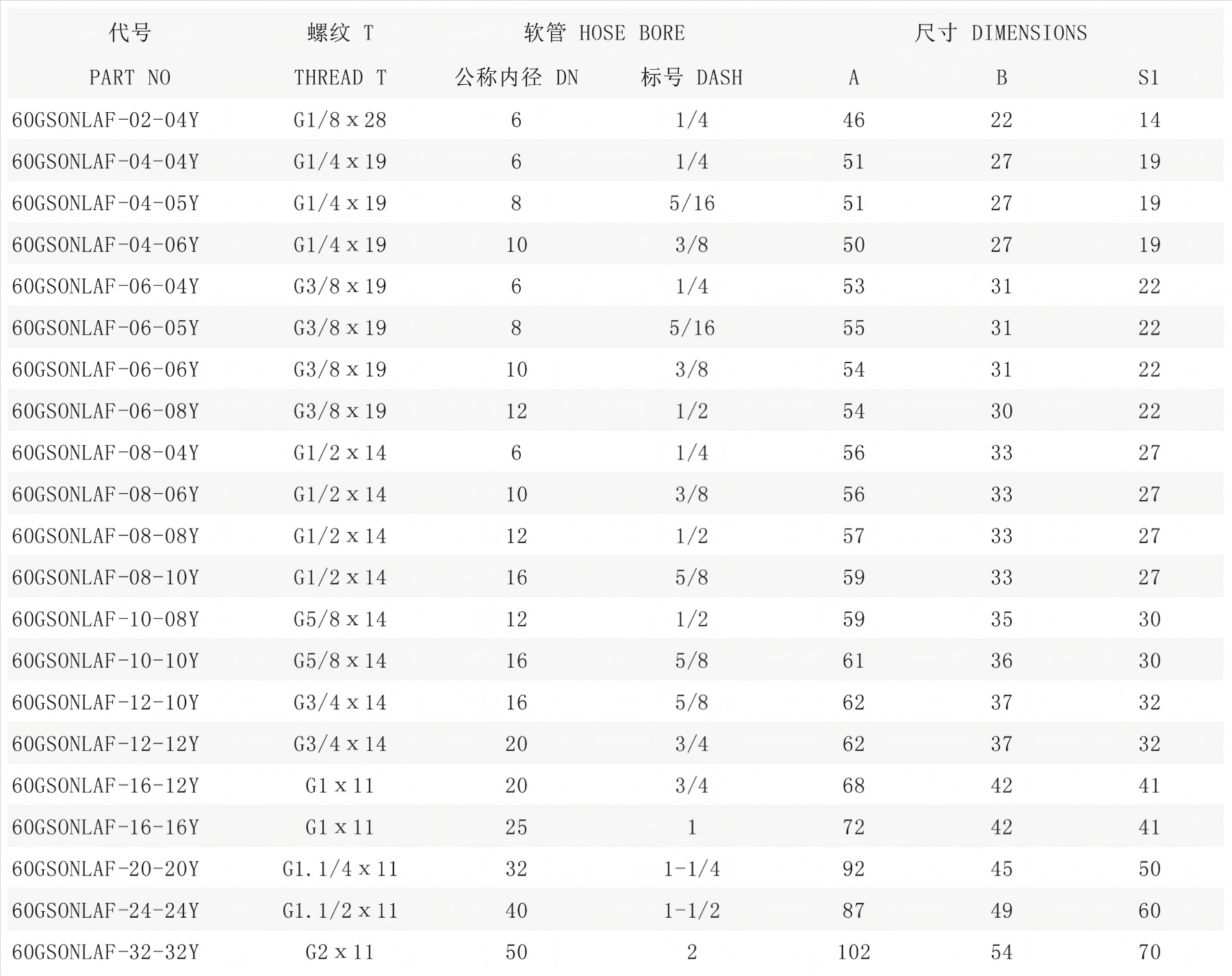 24SFLLA-18-08TY | 24SFL18T/SA08/L | 24SLM26X1.5T | STA08Y | 1CA43-18-8 | 20411-26-08 |