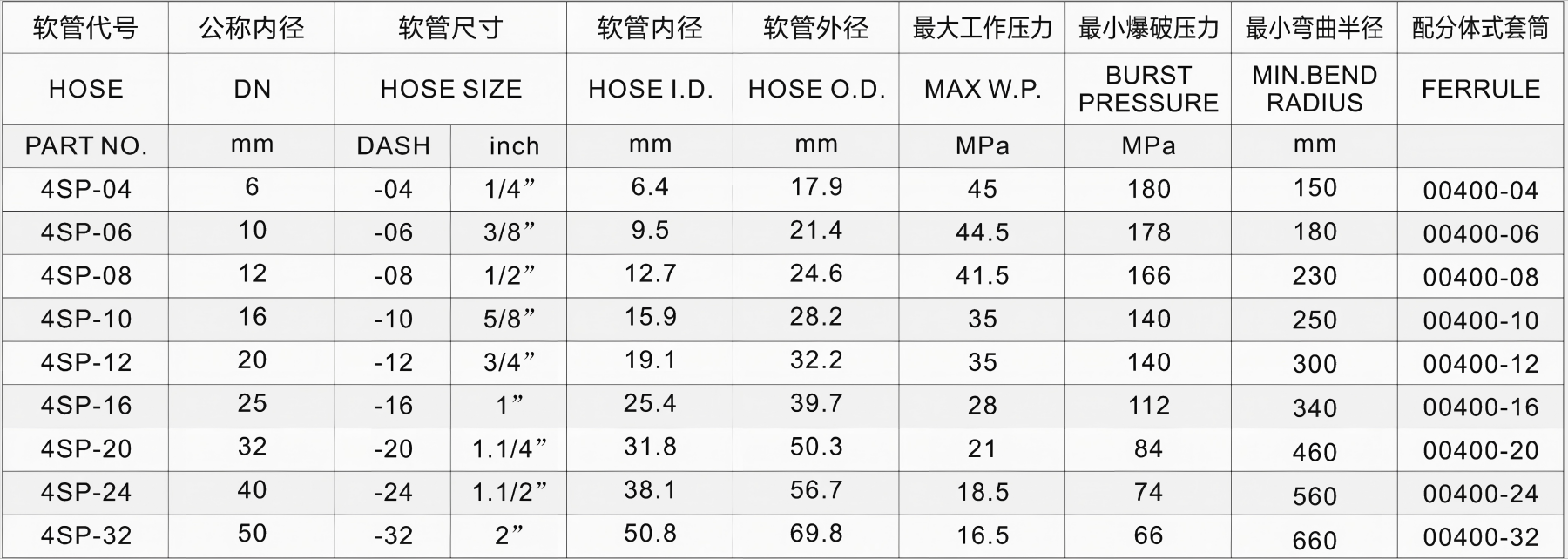 增强层Reinforcement:4层钢丝缠绕增强层Four High Wire Braid Reinforcement