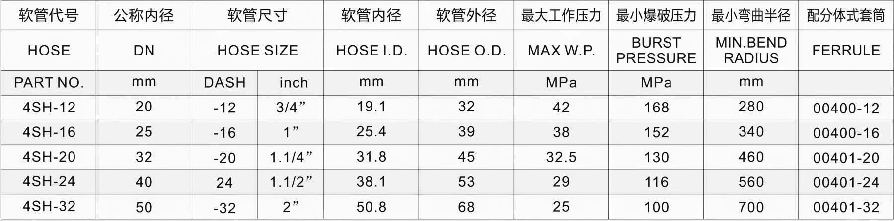 增强层Reinforcement:4层钢丝缠绕增强层Four High Wire Braid Reinforcement