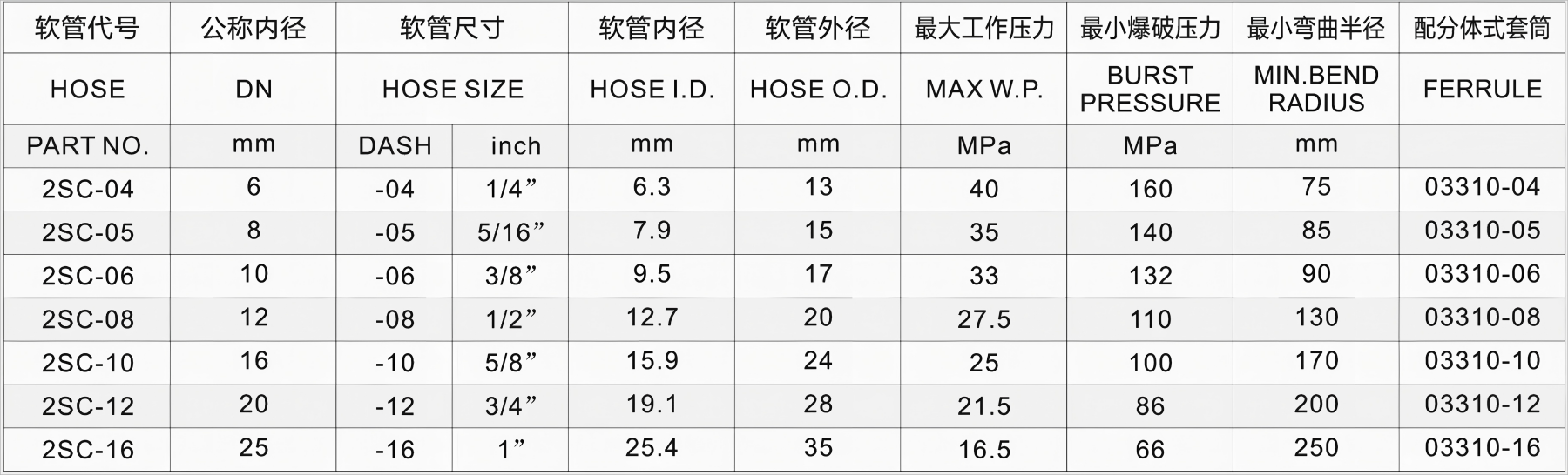 增强层Reinforcement:2层钢丝编织增强层 Two Single Wire Braid Reinforcement