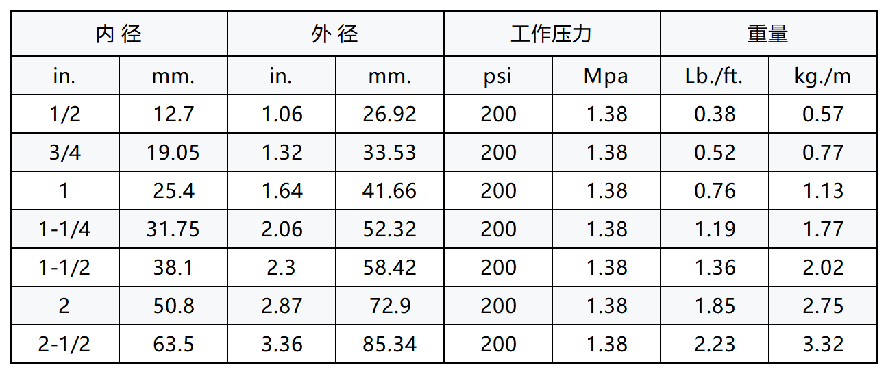 包装:1/2~2" 100'一卷 盘绕多层包装 1-1/4"~2-1/2" 50'一卷 盘绕多层包装
