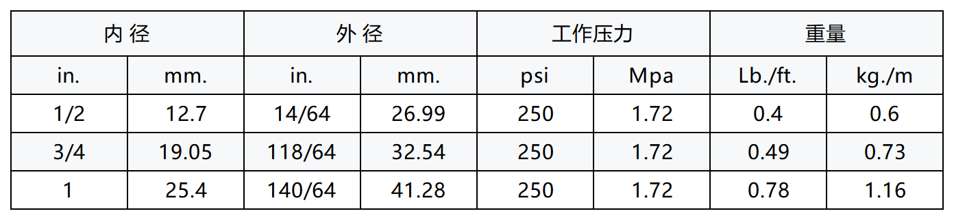 应用:Flexsteel250Steam可用于清洗,热控制,消防,泵,解冻,鼓风,蒸汽泵,和开放式卷扬机或固定装置的操作。它可用在炼油厂,码头,化工厂,轧钢厂,铸造厂和重工业,这些地方管子需要高强度,经常要在苛刻的环境下工作。结构:内胶:耐高温三元乙丙合成橡胶。外胶:黑色或红色的三元乙丙合成橡胶(光面,针刺的)。增强层:金属丝编织层(3/4”和1”是2层)。