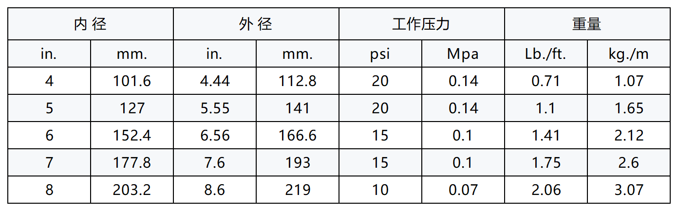 包装:4"~6" 100′—卷 盘绕多层包装7"~8" 50′—卷 盘绕多层包装