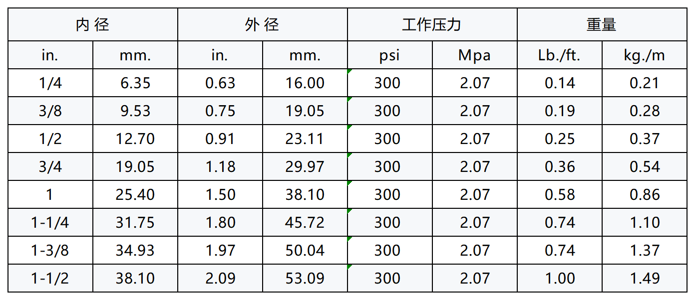 结构:内胶:黑色、耐低温、耐油的合成橡胶。外胶:黑色、超低温、耐油的合成橡胶(带有一条蓝色的条纹)。增强层:合成线绳,管内有一层防静电的接地金属丝。
