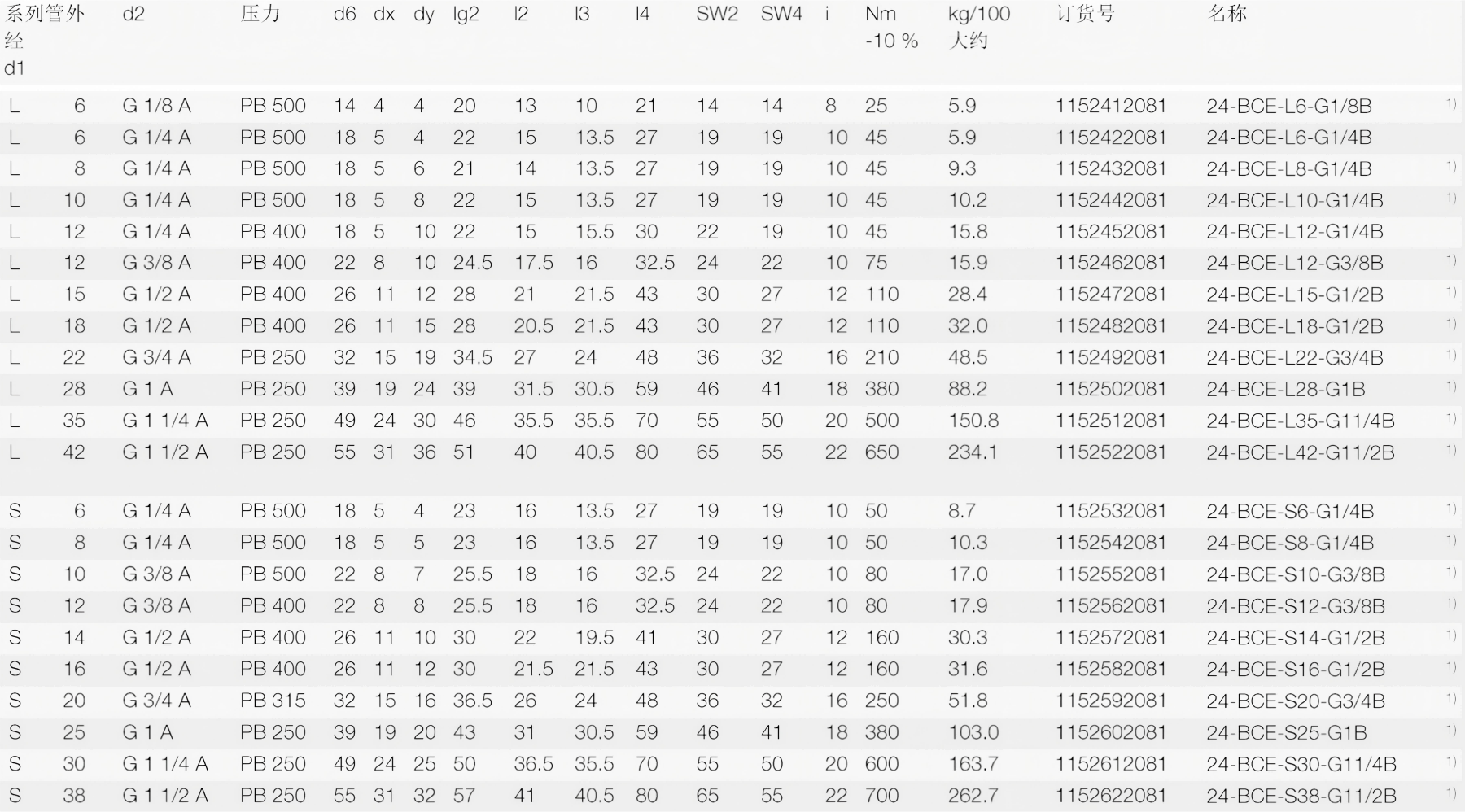 高压紧凑型固定螺纹:BSPP惠氏管螺纹,圆柱形用于旋入孔:ISO1179-1标准(F型-细长)密封方式:边沿密封圈(B型)密封材料:标准丁晴橡胶管件连接件:24°符合ISO8434-1标准