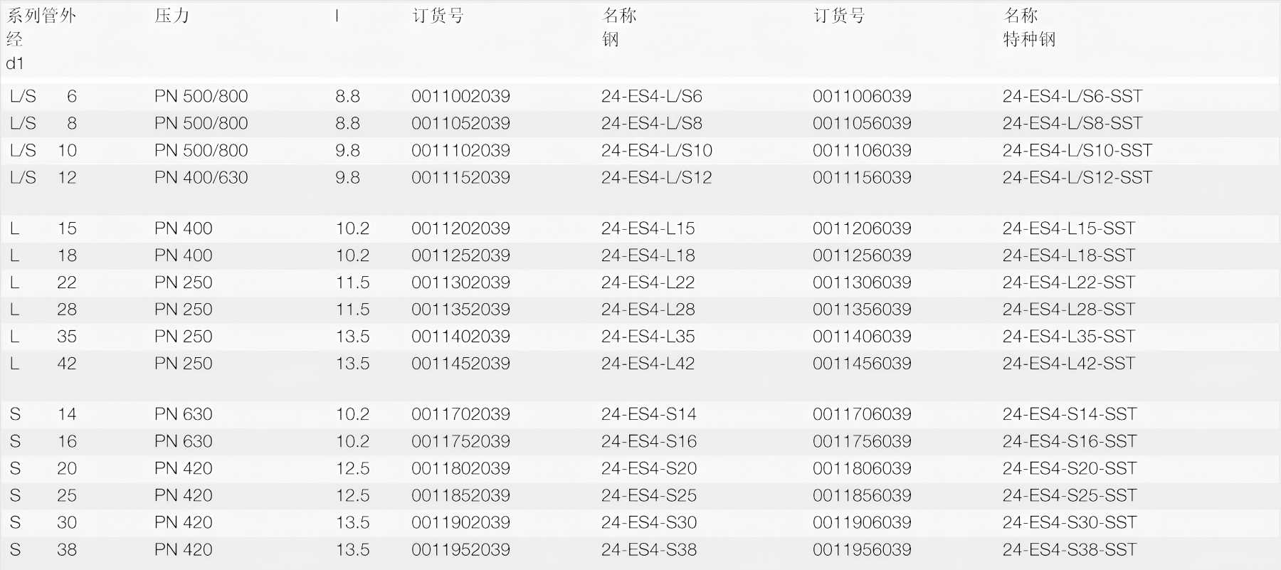 管外径6至12mm的卡套在系列L+S中的结构是相同的。