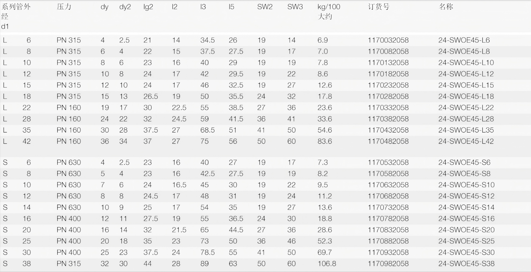 相关比较示例:EV06LVITOMD,ISO 8434-1-SWOE45-L6-St