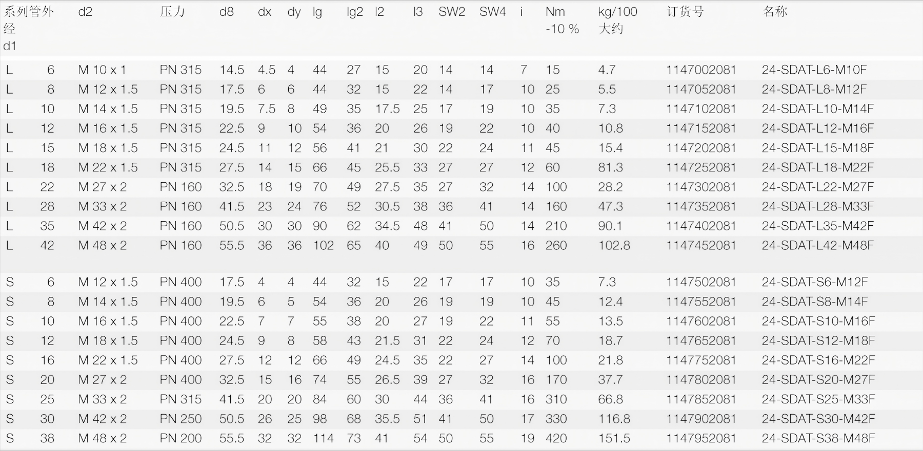 带锁紧螺母公制细螺纹,ISO 6149-2/3标准