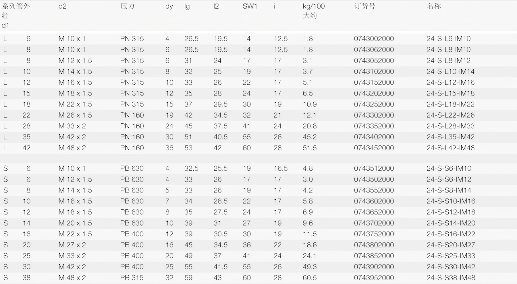 固定螺纹:公制细螺纹,圆柱形旋入孔:ISO9974-1标准管件连接件:24°符合ISO8434-1标准