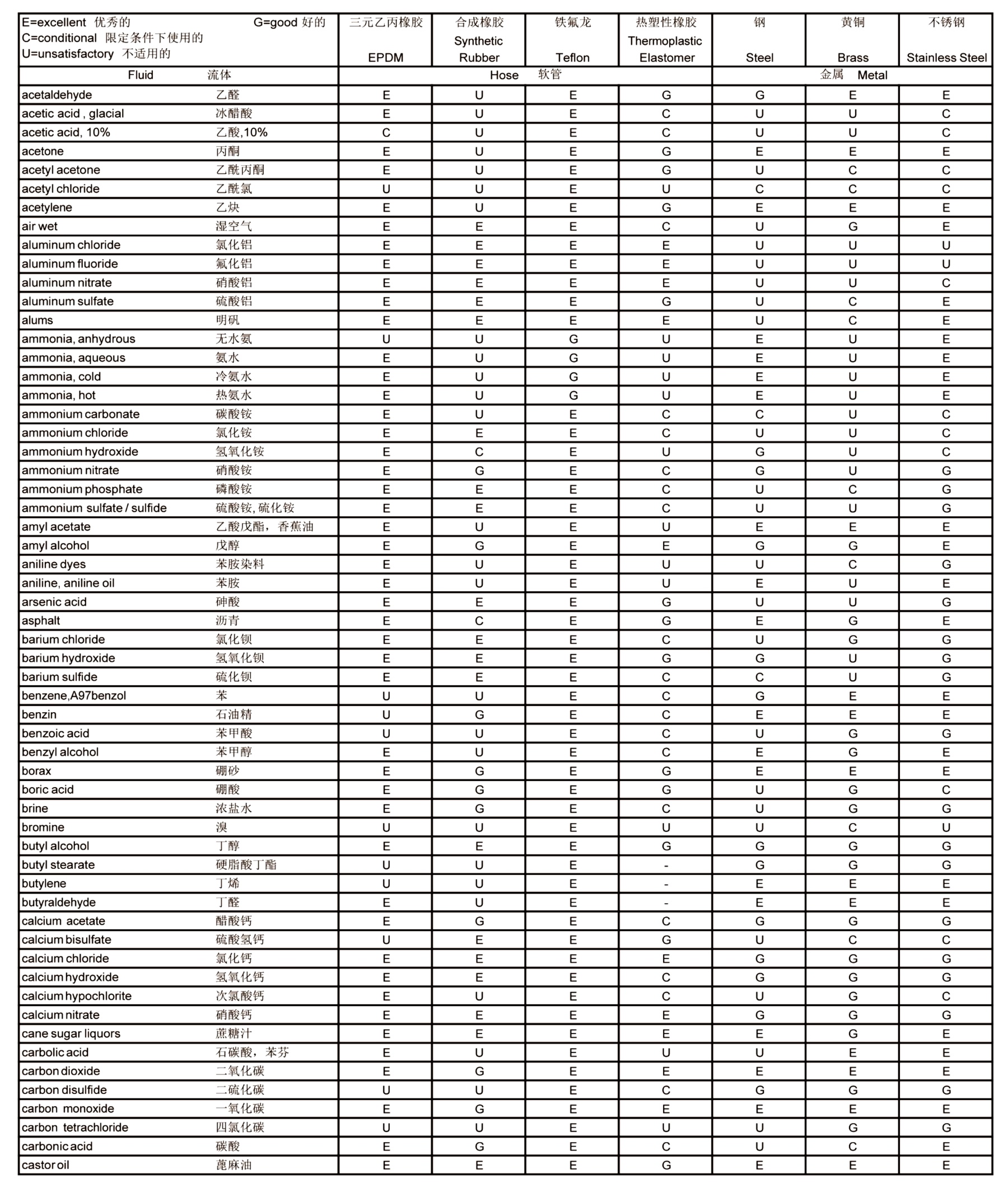 软管内层、接头材质与化学物质的相溶性