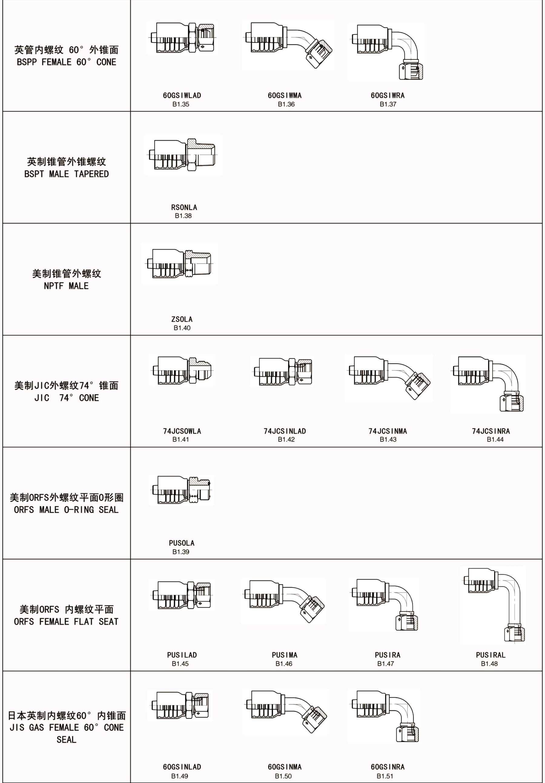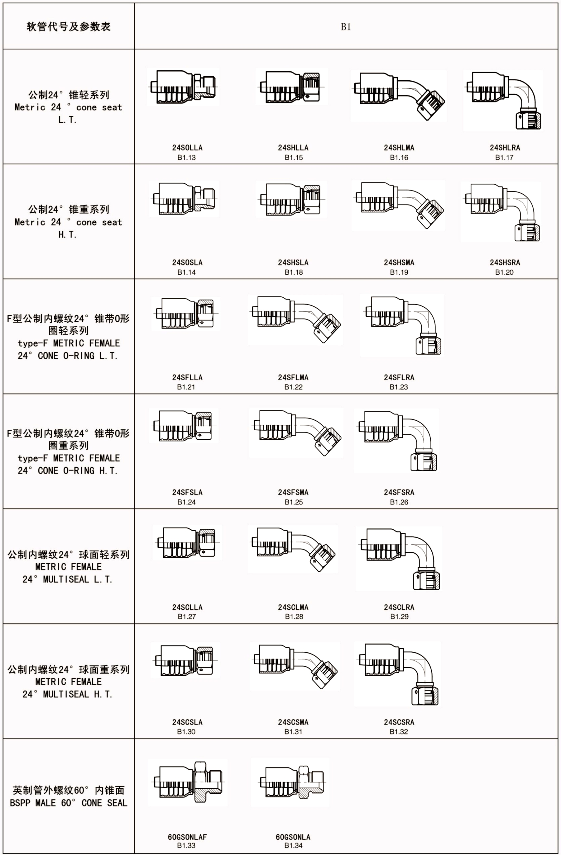 软管代号及参数表